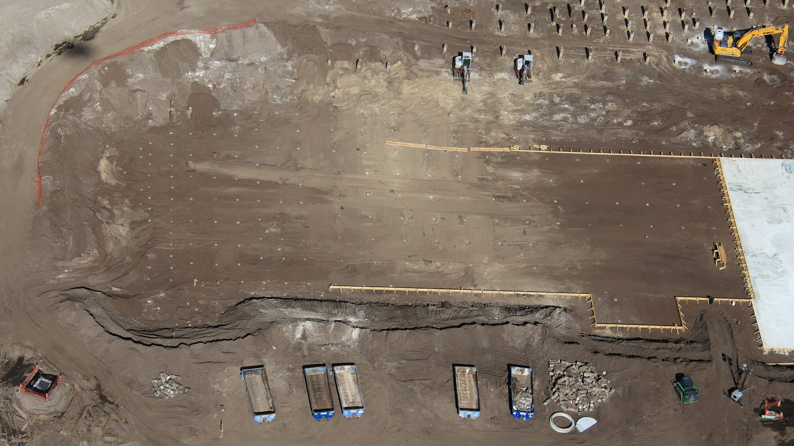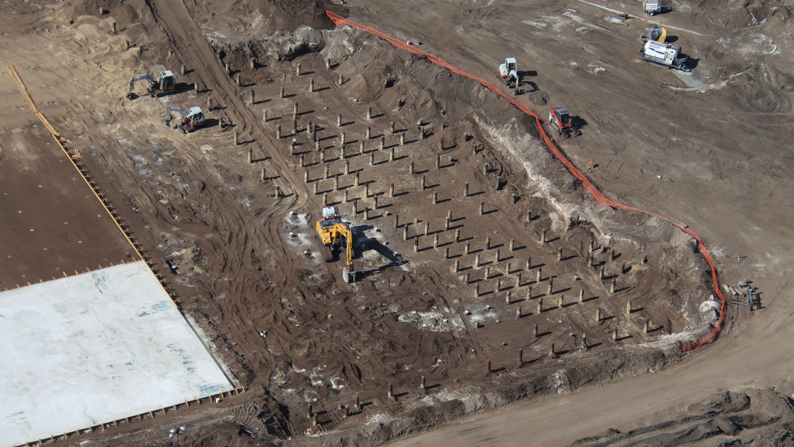 Look closely and you’ll see dozens of concrete spots in a grid across the ground.
