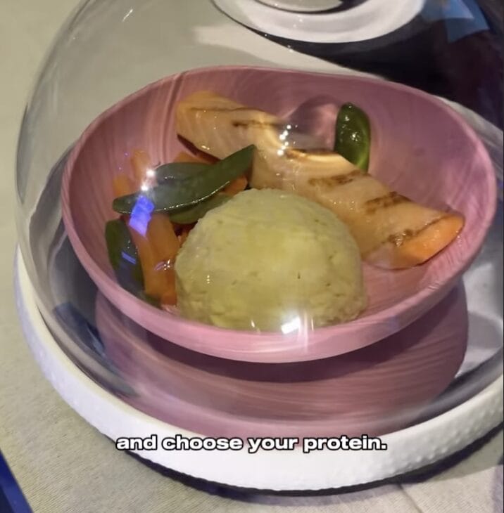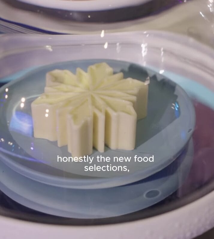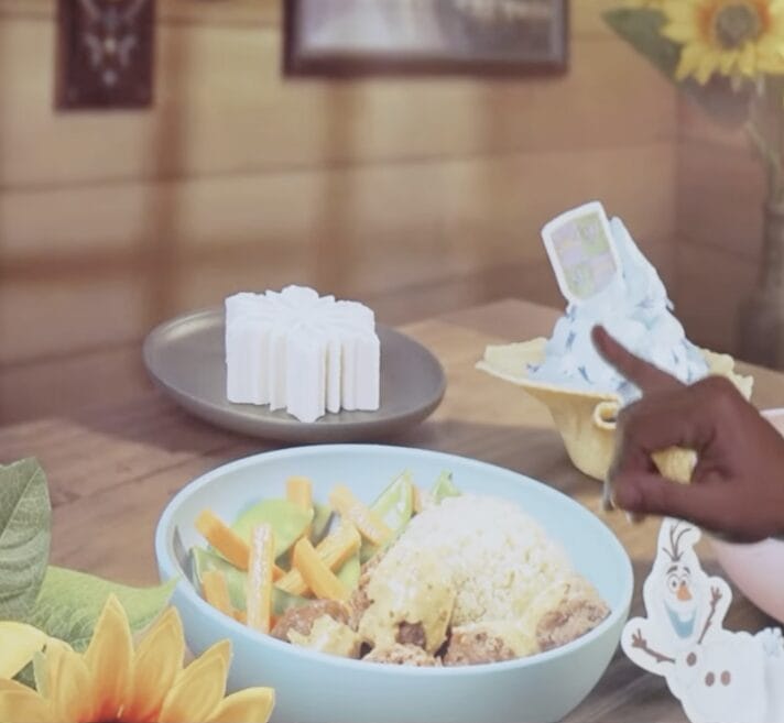Other visible dishes, possibly for Nordic Crown Tavern in World of Frozen, include a snowflake-shaped item, and bowls with veggies and protein options.