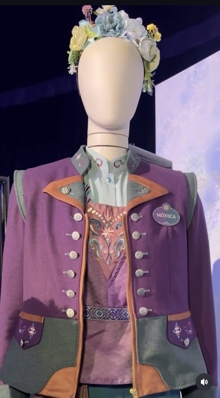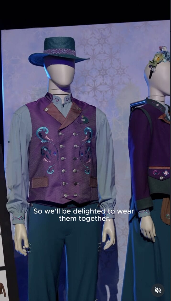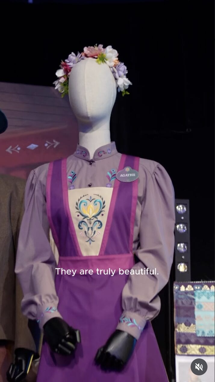Cast Members will become Arendelle villagers with costumes featuring Nordic patterns. These are predictably similar to the World of Frozen costumes at Hong Kong Disneyland but not exactly the same. They use a color scheme of rich purple and dark teal.