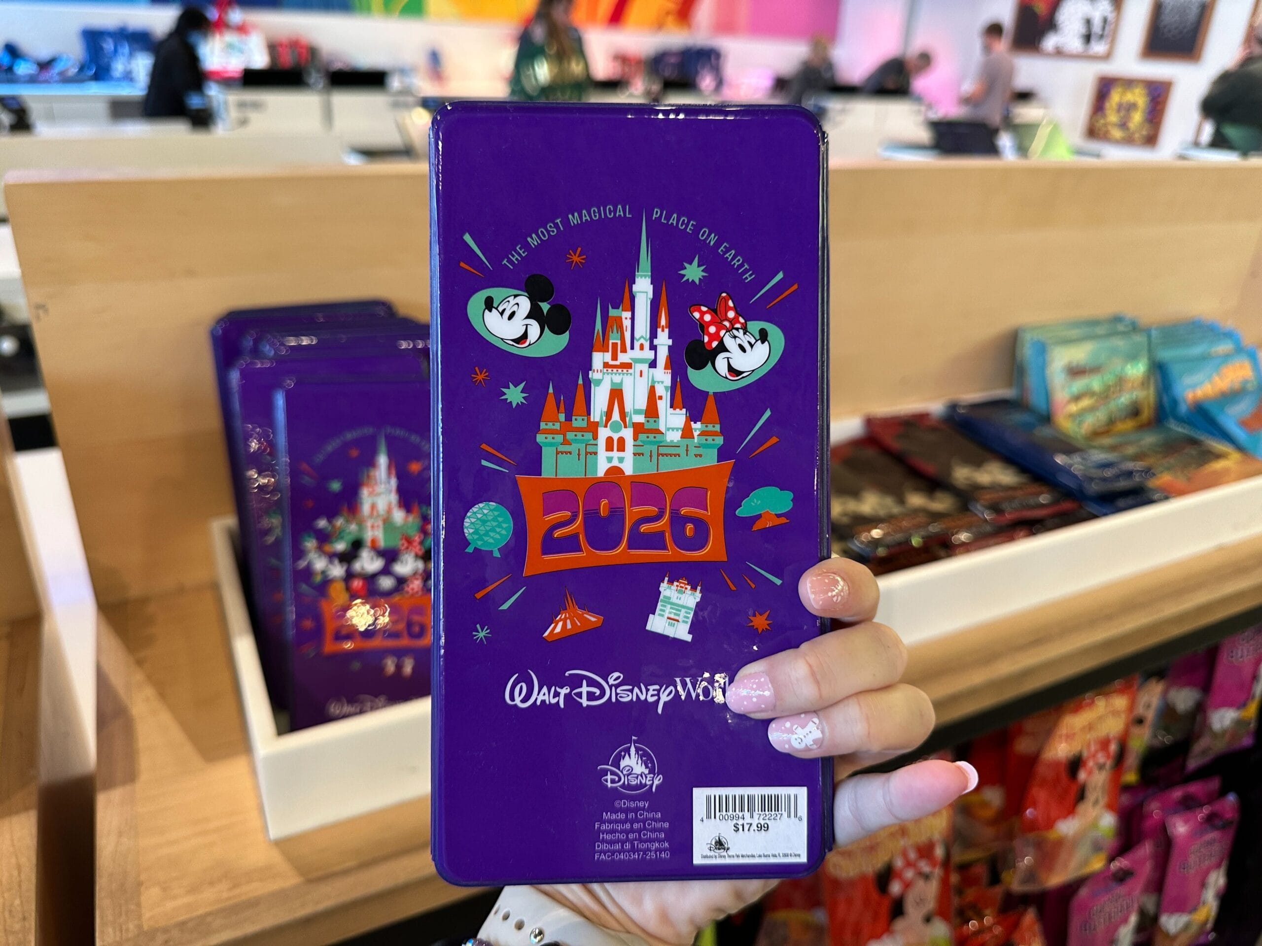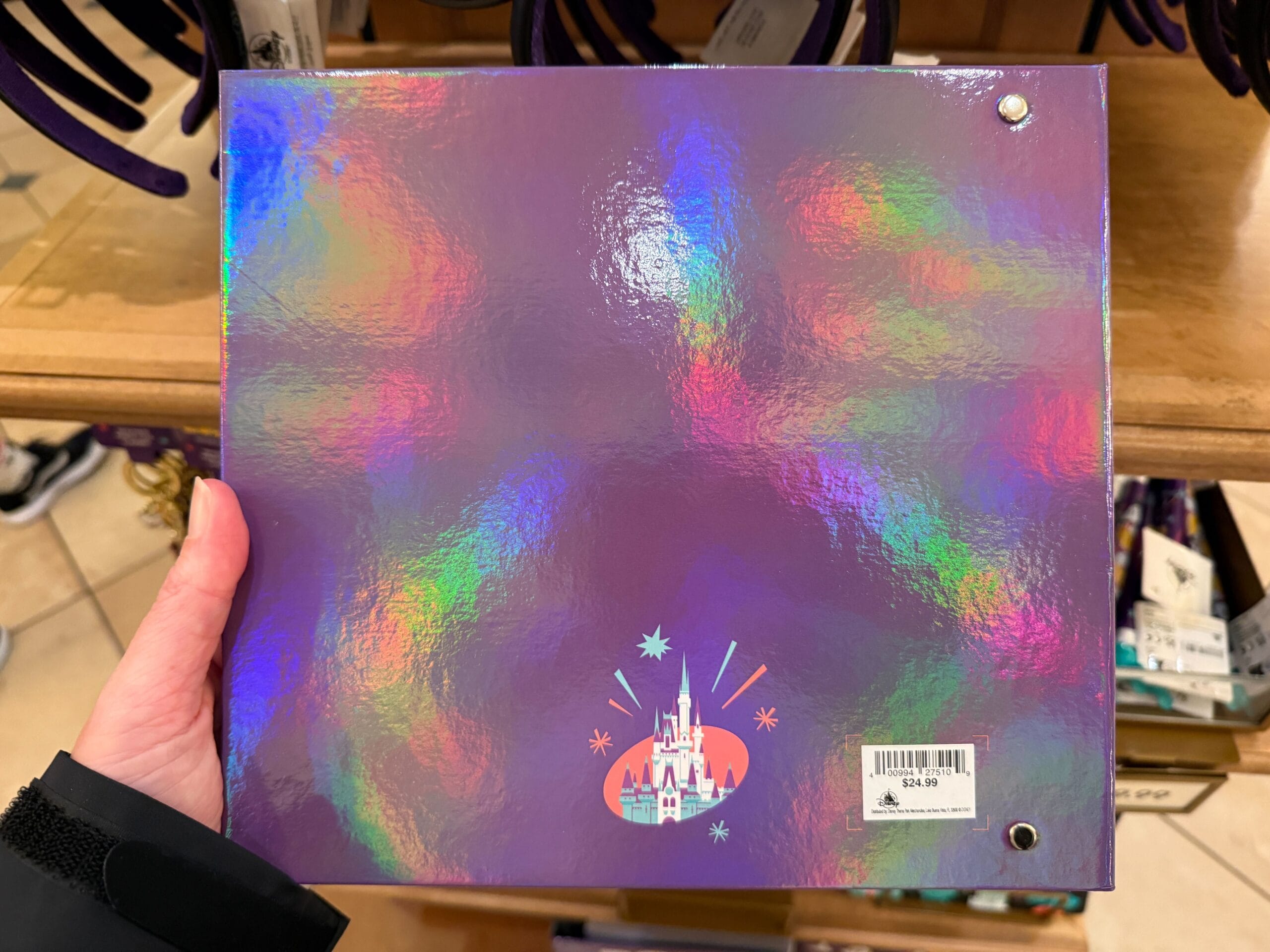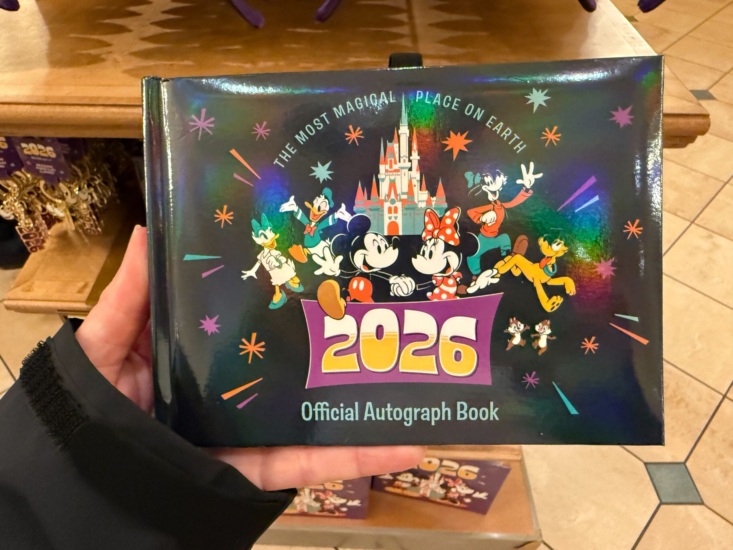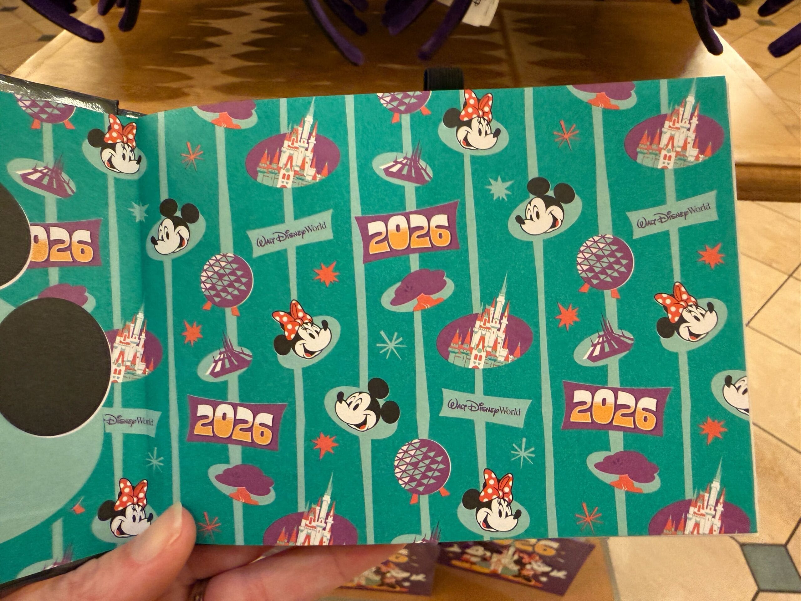 This large album is a shiny purple. Mickey, Minnie, Cinderella Castle, and “2026” are on the front.