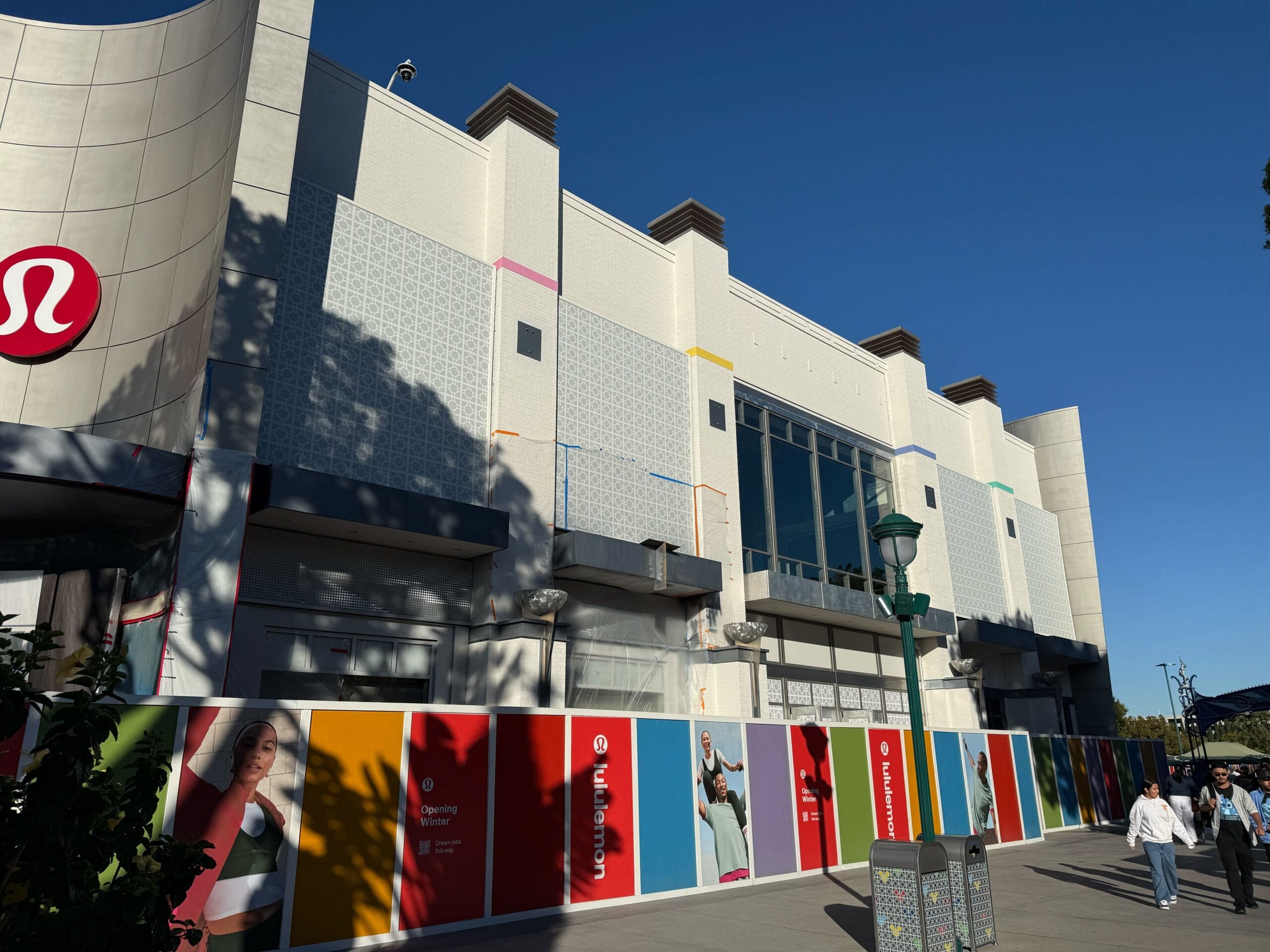 Disney and lululemon haven’t announced an opening timeframe, but the exterior looks near completion. It could open early next year.