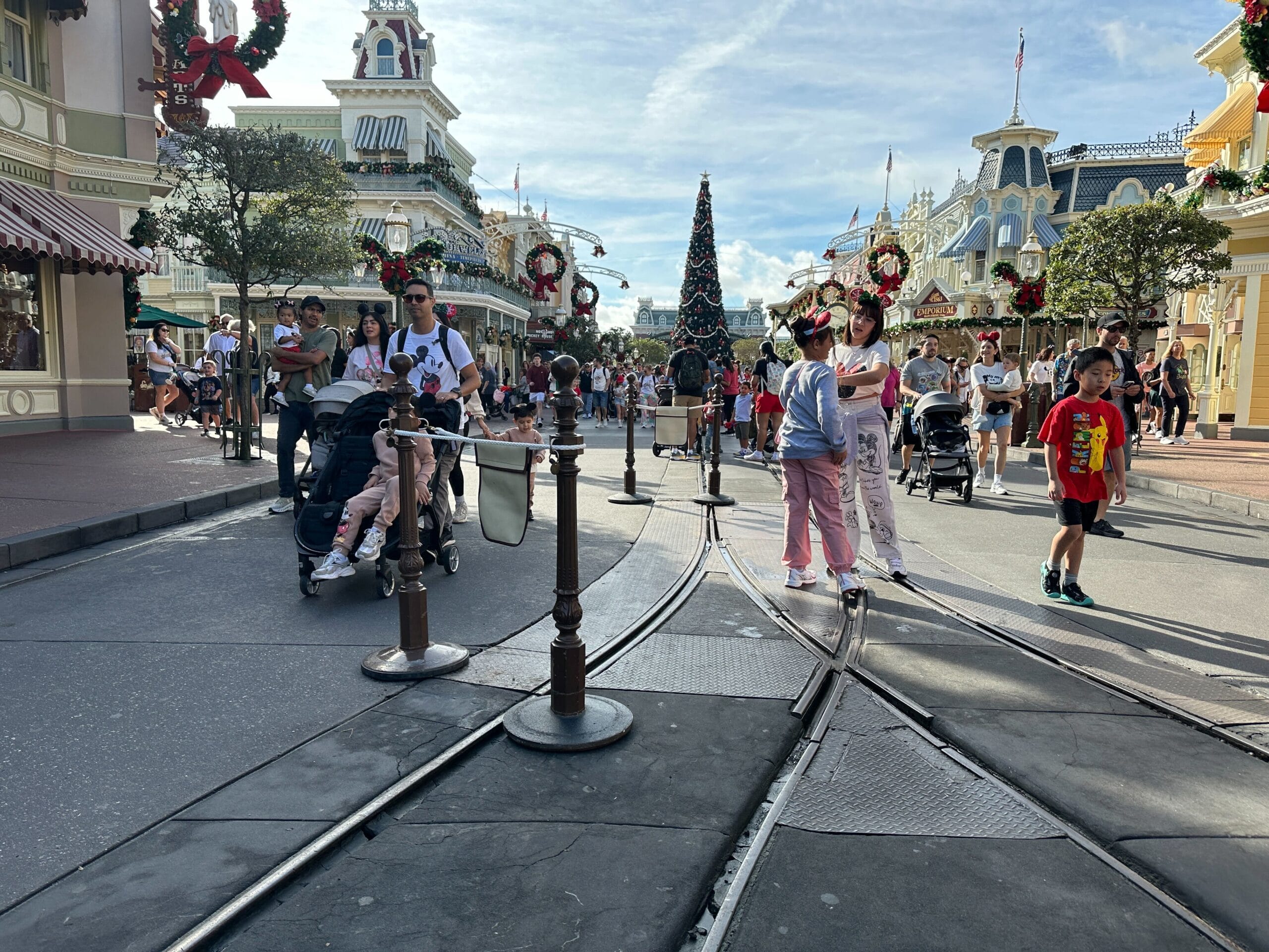Sections of damaged pavement on Main Street, U.S.A. at Magic Kingdom are affecting trolley operations.