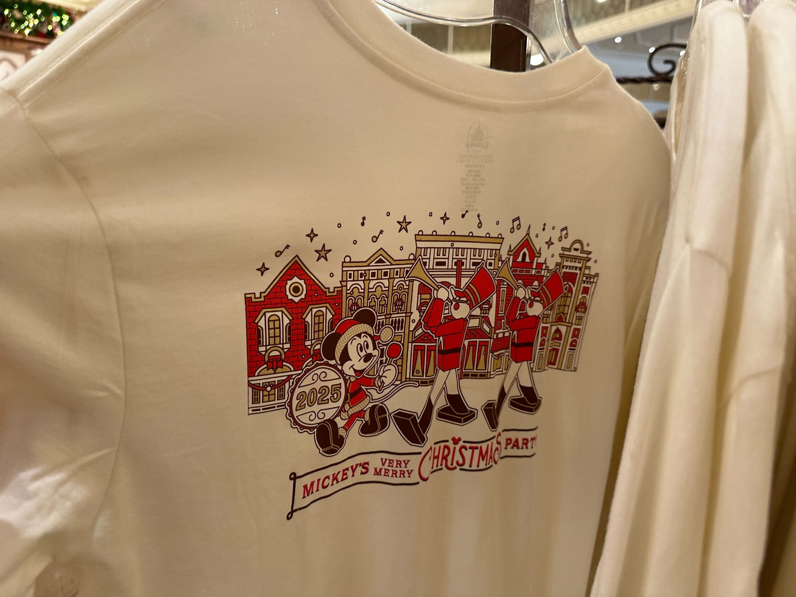 Mickey’s Very Merry Christmas Party merchandise includes apparel, pins, and an ornament, which haven’t been released during the day.