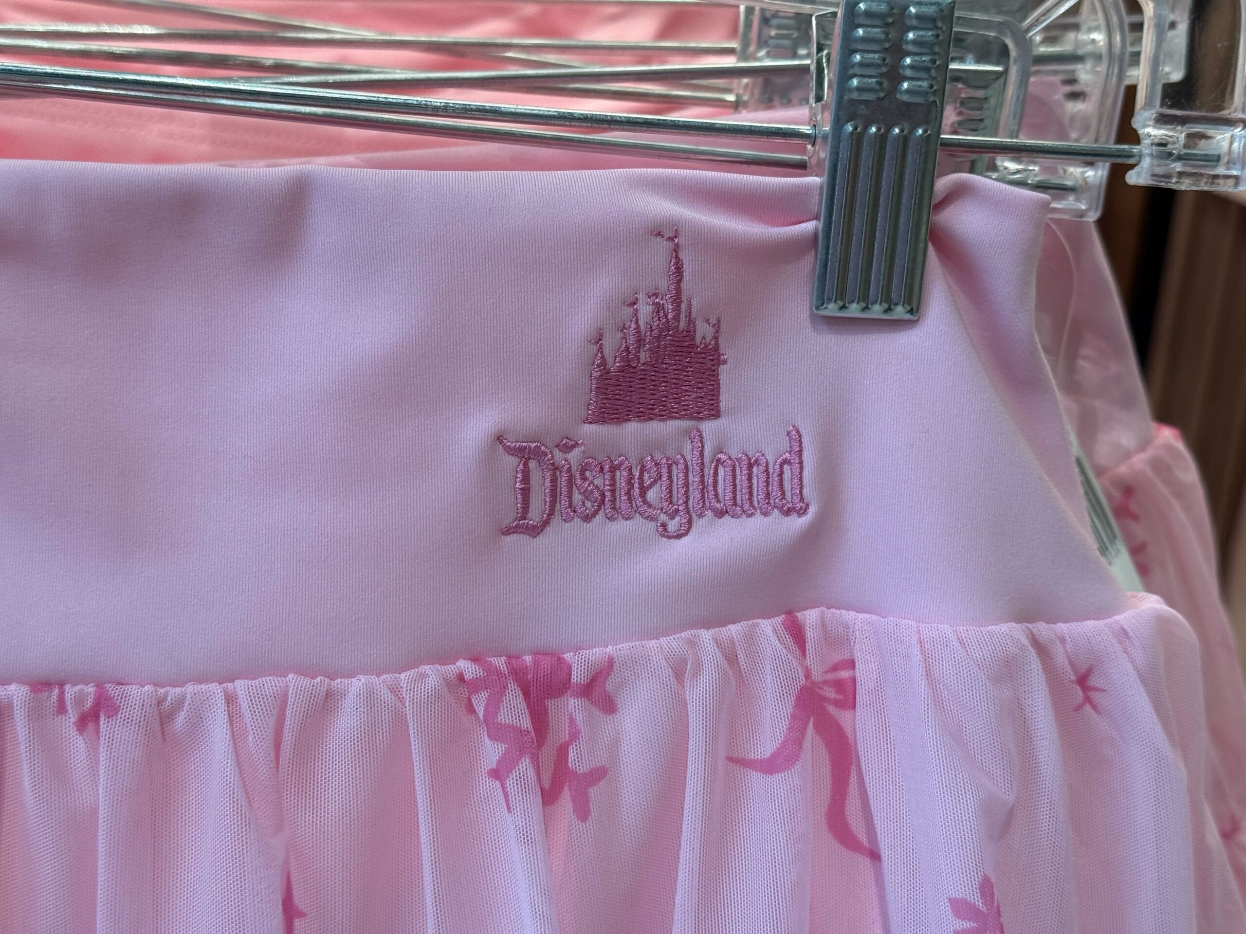 “Disneyland” is embroidered in pink across the back shoulders. A bow decorated the corner of the “D.”