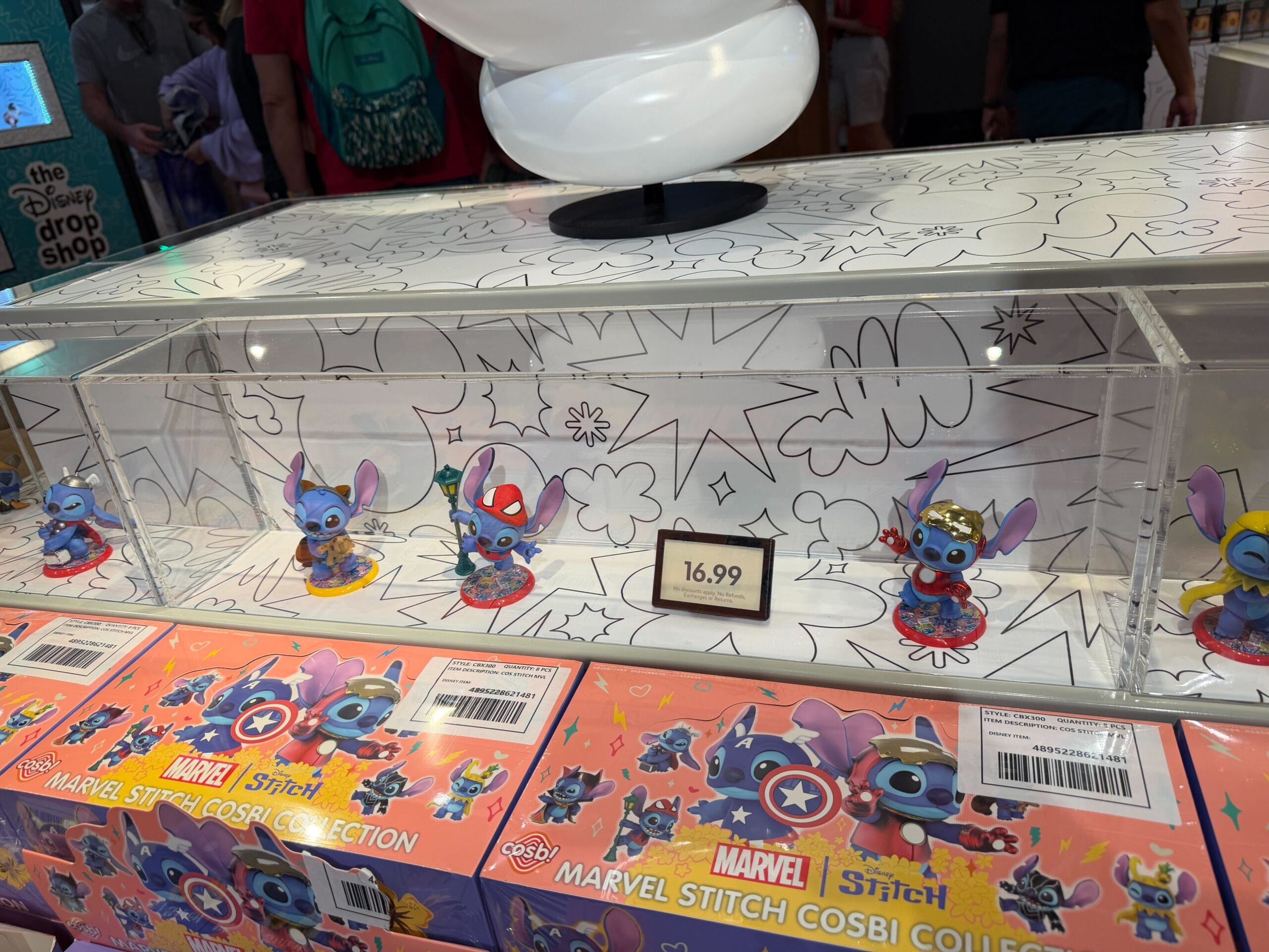The Disney Drop Shop is on the right when entering Marketplace Co-Op through the main entrance. The blind boxes are stacked on shelves along the walls. There are display cases in the center of the store and on the shelves showing off the figures and plush you might find inside your box.