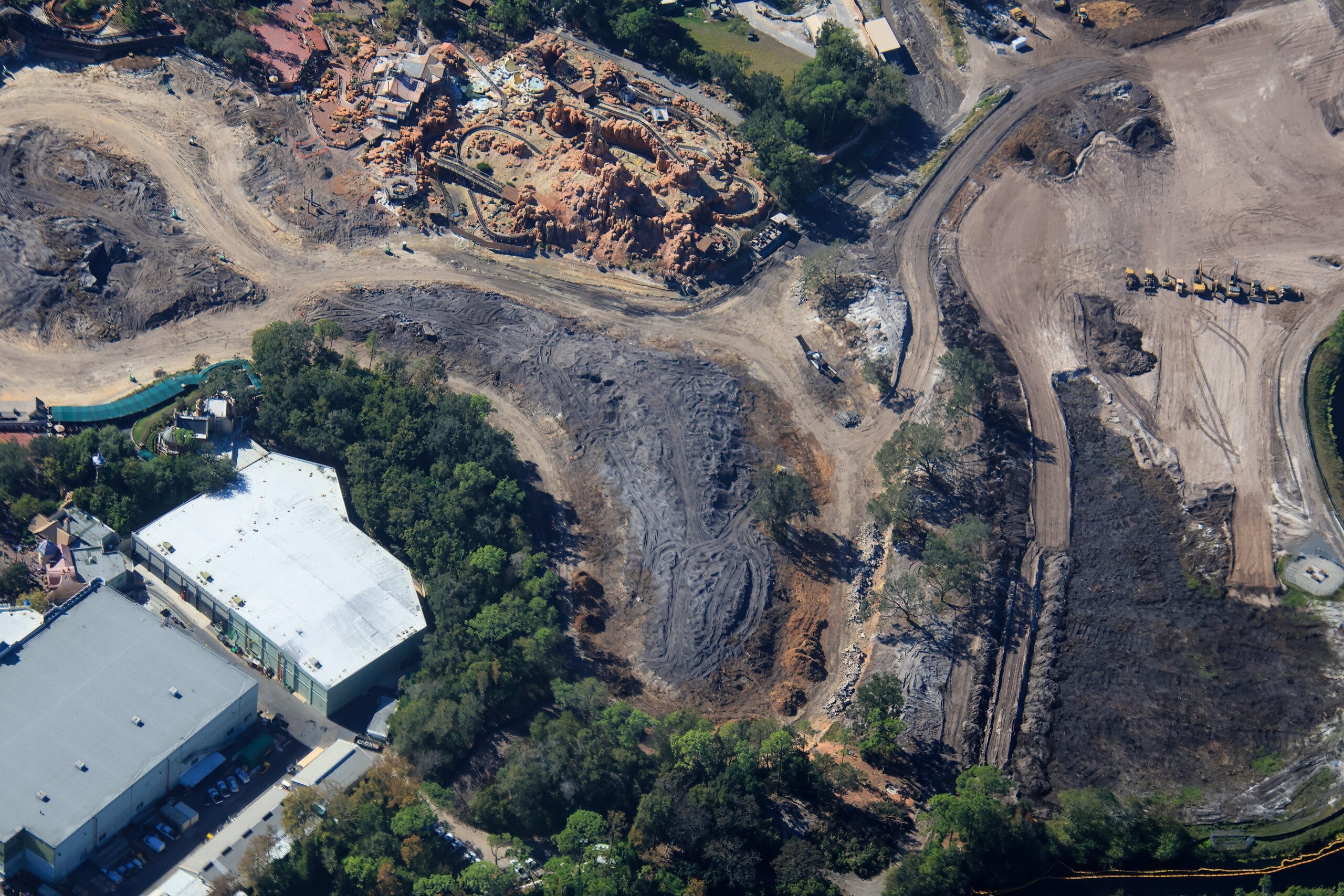 Piston Peak is expected to be in the circular area sandwiched between Liberty Square and Frontierland, while Villains Land will take up the space next to and beyond Big Thunder Mountain. In a backstage area that used to be full of trees, crews are placing sand on the ground.