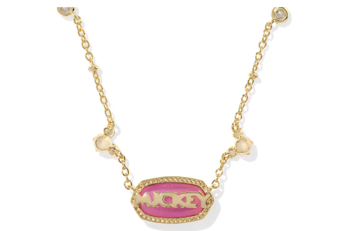 Gold Mickey Mouse Elisa Pendant Pink Name Necklace – $98