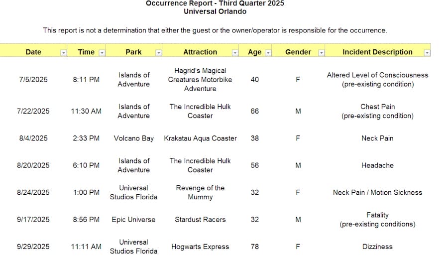 Universal Orlando Resort removed reference to “pre-existing conditions” from a report about the Epic Universe guest who passed away after riding Stardust Racers, indicating his pre-existing conditions may not have been connected to his passing.