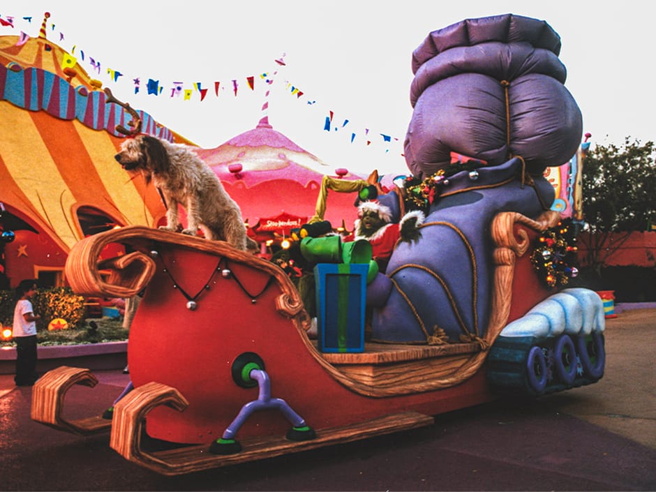 It wasn’t easy for guests to catch all three acts, and many missed the Grinch. Lora Sauls, assistant director of creative development, said, “This is where we really listened to our guests. So, in 2002, we combined those three acts into one cohesive 15- to 20-minute show that (we) performed several times a day, and that really made our guests happy because they got the whole story.”