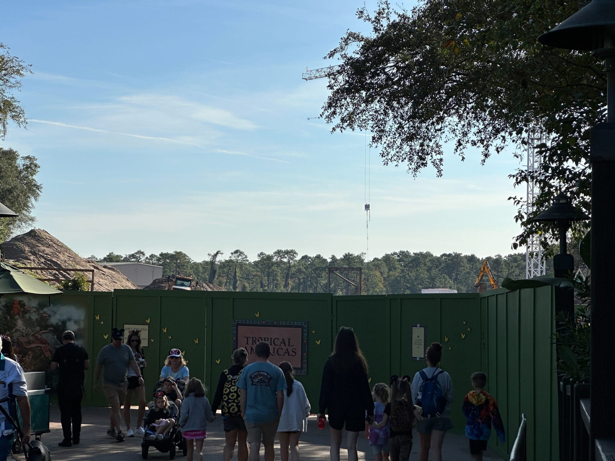 A vertical structure for the new Encanto-themed ride has risen into view behind construction walls in DinoLand U.S.A. The Disney’s Animal Kingdom land is being transformed into a new Tropical Americas area.
